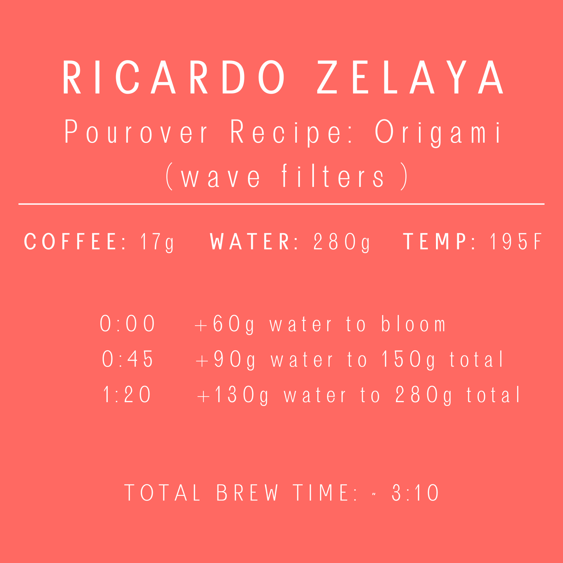 We used wave 185 filters for this brew. The high contact of the wave filters on the origami brewer really helps to speed this brew up, which seems to suit this coffee nicely. On the origami, this coffee is more balanced and approachable - quite a bit sweeter than with the V60 recipe and with a much more toned down acidity.